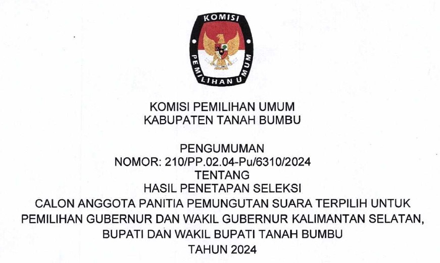 PENETAPAN CALON PPS TANAH BUMBU TERPILIH PEMILIHAN 2024 Sabtu, 25 Mei 2024 19:00 1248 >>Unduh Pengumuman<< Bagikan: Telah dilihat 1,248 kali